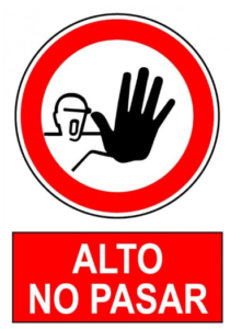 The NO PASSING sign indicates the prohibition of passage to people who are not authorized.