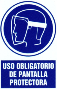 The OBLIGATION PROTECTIVE SCREEN sign indicates that in that specific work area the use of a protective screen is mandatory.
