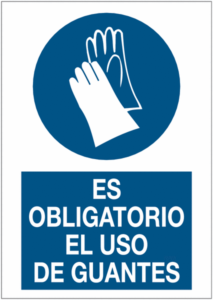 The OBLIGATION GLOVES sign indicates that in that specific work area the use of safety gloves is mandatory.